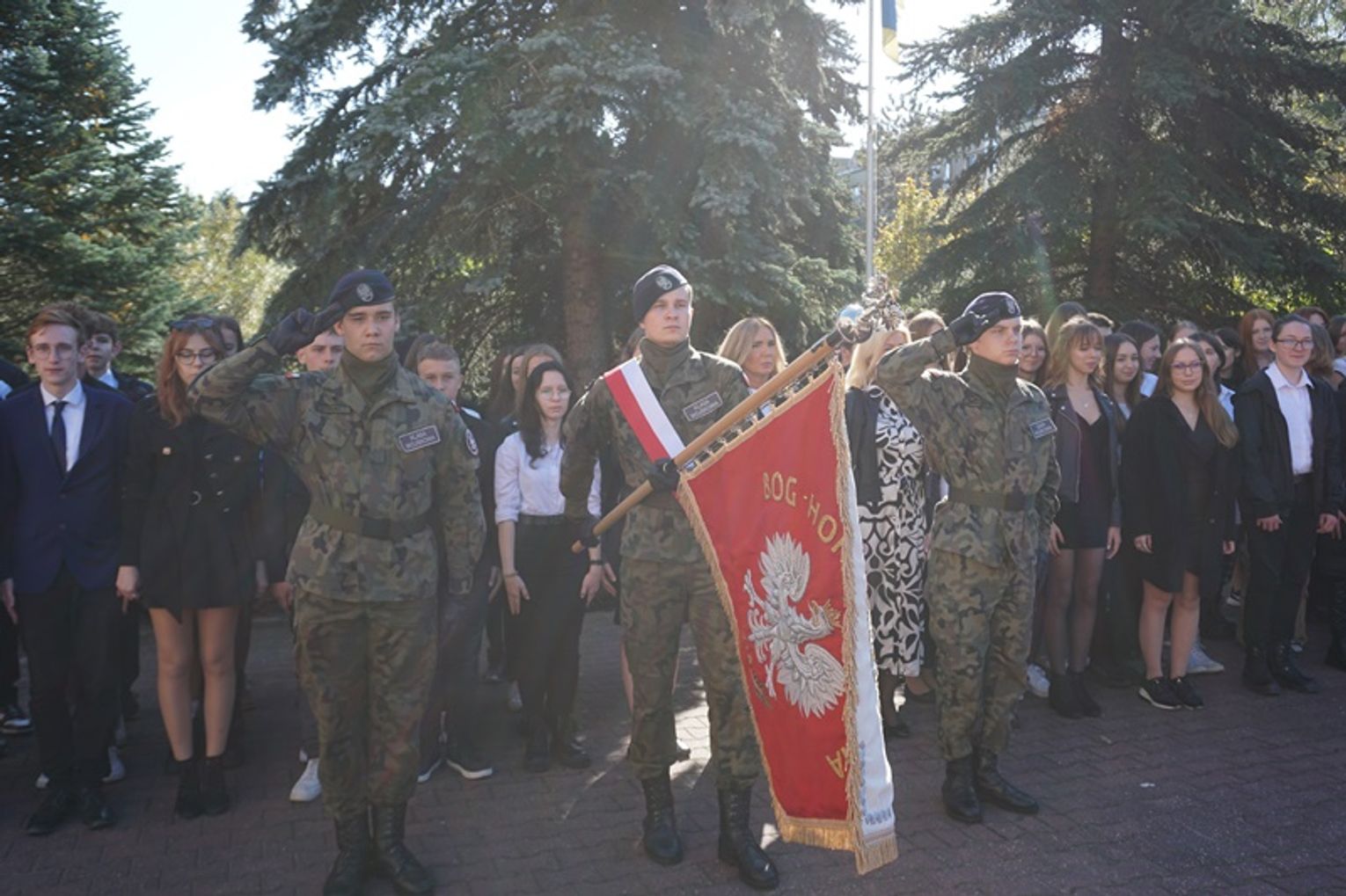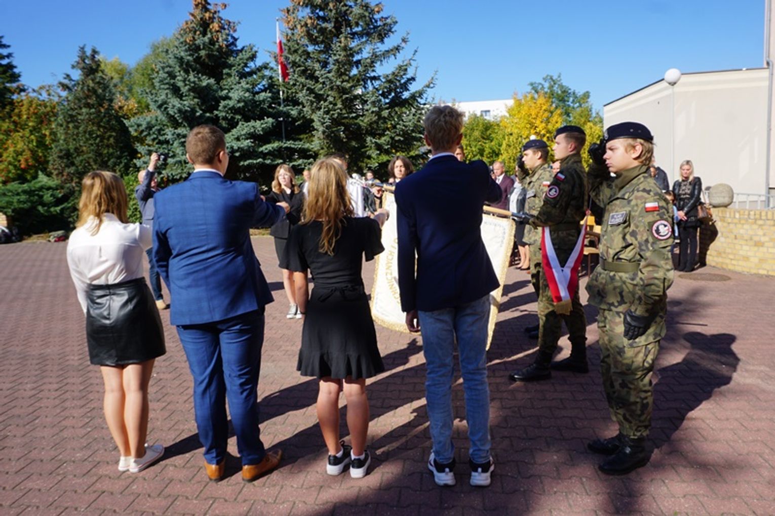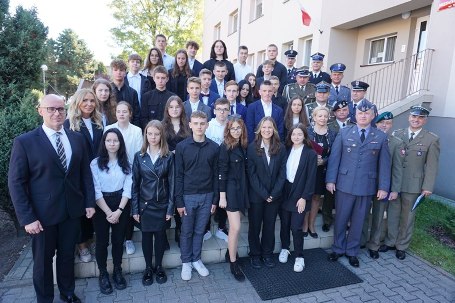 W uroczystym ślubowaniu uczestniczyli goście: przedstawiciele władz samorządowych, służb mundurowych, uczelni wyższych oraz były dyrektor ZSTiO Eugeniusz Paterka.