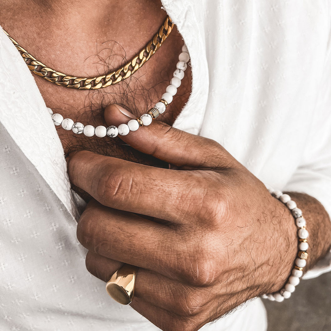 Nowością na rynku jest łańcuch męski z dekoracyjnymi charmsami. Model łączy w sobie nowoczesność i elegancję. Dzięki temu może być bez trudu wybierany do stylizacji codziennych, jak również bardziej eleganckich, tworzonych na specjalne okazje. Prezentuje się niezwykle okazale, wnosząc do męskiej stylizacji powiew świeżości oraz luksusu. Co ważne, wykonany został w całości ze stali szlachetnej. Dzięki temu nie będzie barwił skóry, nie utraci intensywności swoich barw, a przy tym, nawet pomimo swojej długiej i intensywnej eksploatacji, będzie cieszył swojego użytkownika nienaganną kondycją.